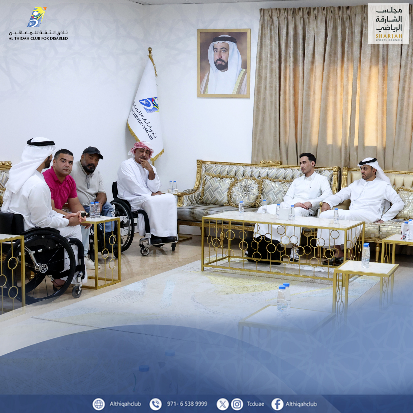 The coordination meeting was attended by His Excellency Dr. Khalid Omar Al Midfa, Chairman of the Board of Directors of Al Thiqa Club for the Disabled; Mr. Mohammed Al Qaid Al Hammadi, Board Member and Acting Executive Director and Chairman of the Technical Committee; and Mr. Sultan Al Enaizi, Representative of the Saudi Olympic and Paralympic Committee and Director of Saudi National Team Participation.